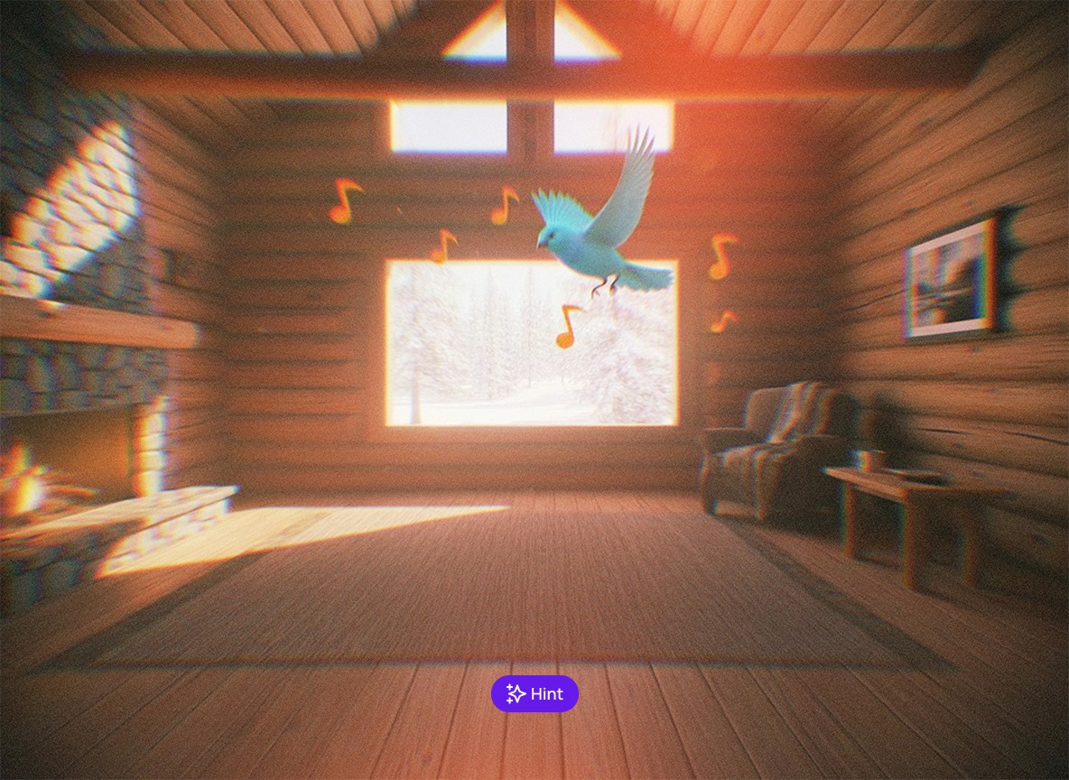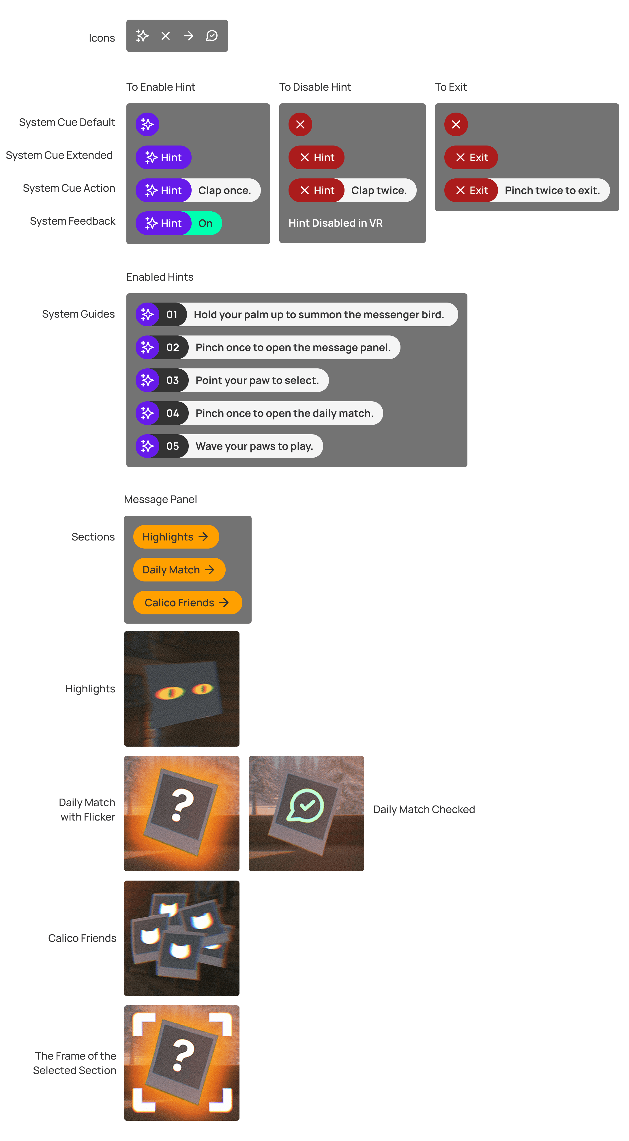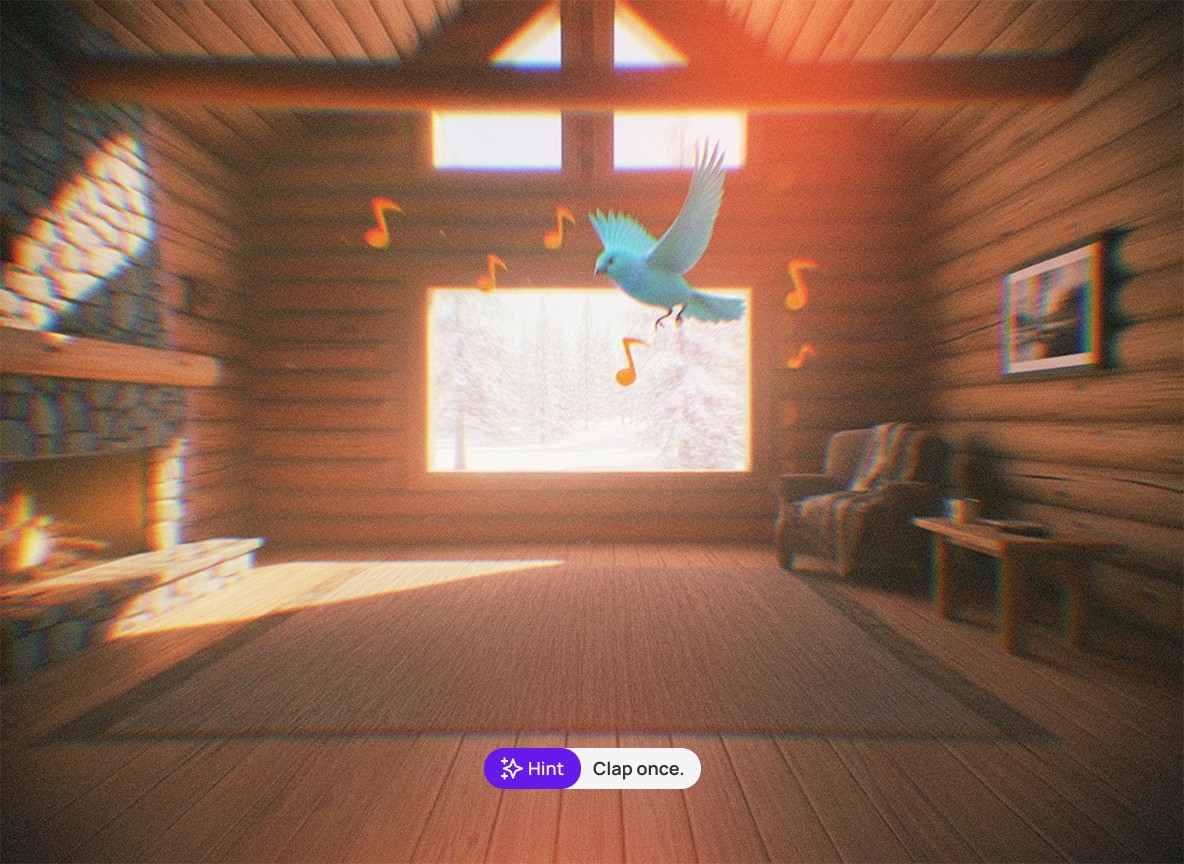 A messenger bird flies through the environment to deliver notifications and daily matches. Users summon it with a palm-up gesture to review messages—an ambient notification system that preserves immersion without interruptions.